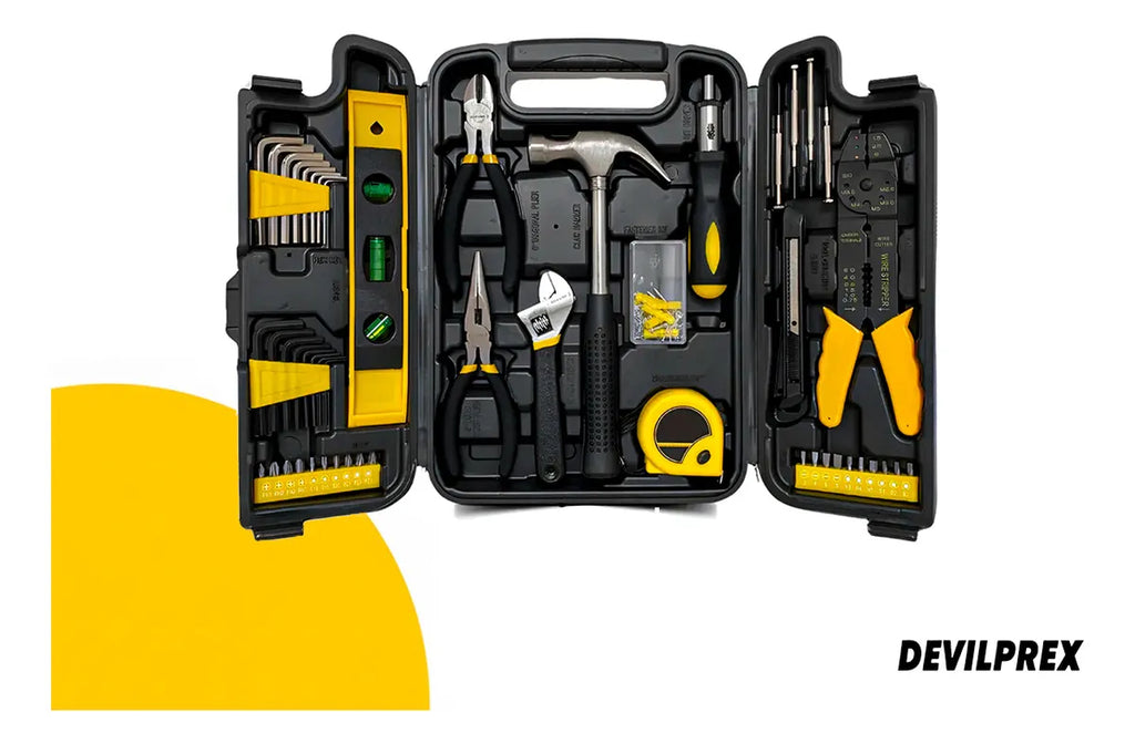 Por que comprar ferramentas picadas se você pode ter o arsenal completo de uma vez? O Mega Combo DEVILPREX entrega absolutamente tudo o que você precisa. Ele une um kit robusto de 129 ferramentas manuais (com bits forjados em aço S2), um jogo mecânico de 40 soquetes com catraca reversível, e a joia da coroa: uma Parafusadeira e Furadeira 12V a Bateria (Lítio). Com torque bruto de 28 N.m, 25 posições de ajuste e luz LED integrada, você perfura aço e madeira ou monta móveis com velocidade e precisão profissional.